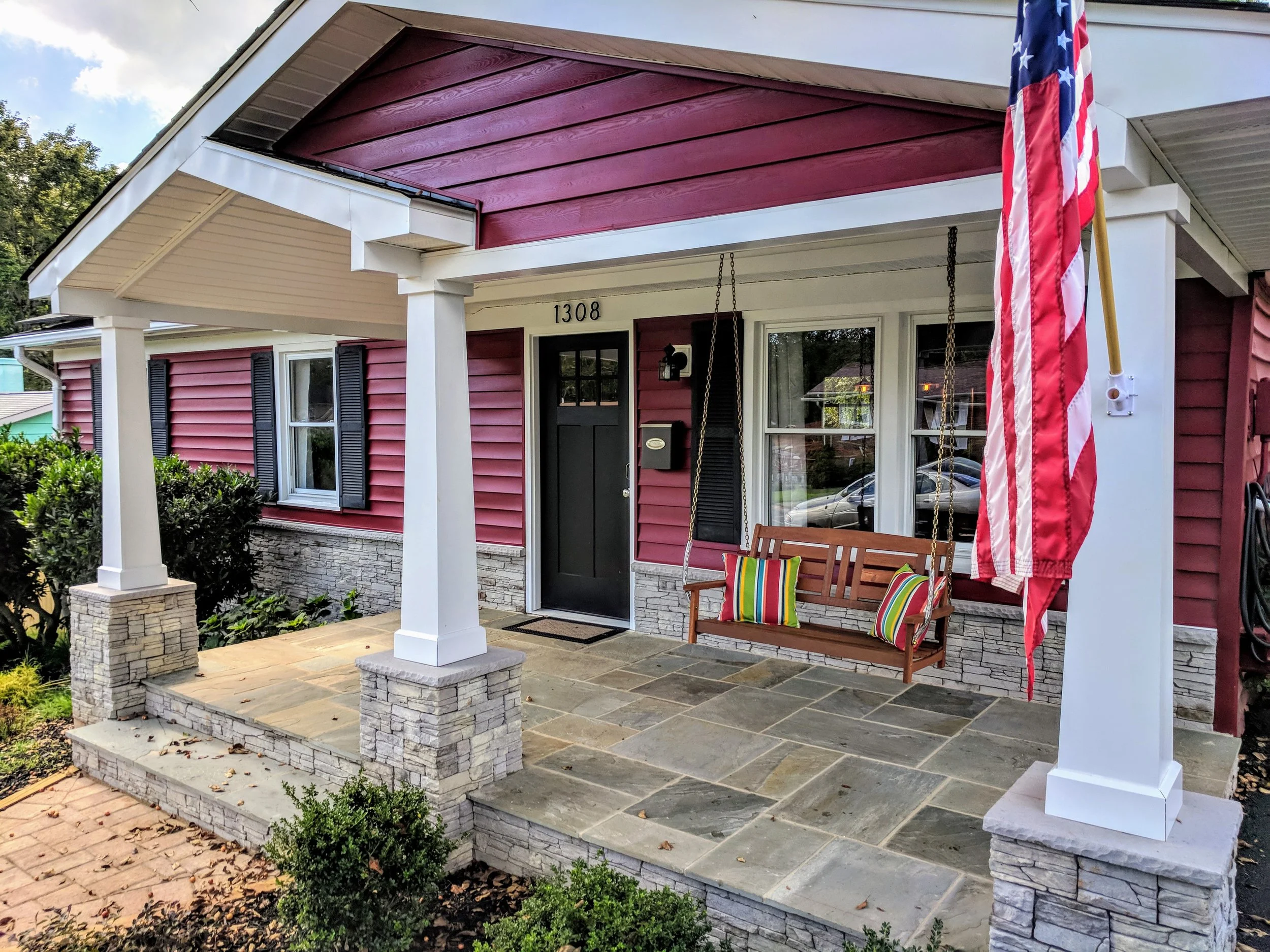 Outside, a wide front porch with a classic swing nods to the charm of Charlottesville living, offering the perfect spot for slow mornings or golden-hour evenings.